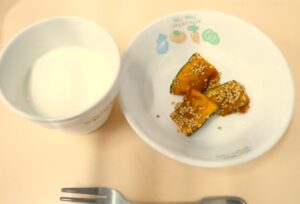 離乳食(後期)午後おやつ:ごまかぼちゃ、麦茶
