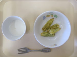 午後おやつ:牛乳、フライドポテト
