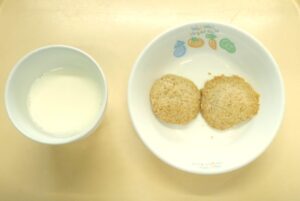 午後おやつ:ごまクッキー、牛乳
