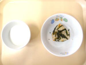 午後おやつ:ツナおにぎり、牛乳