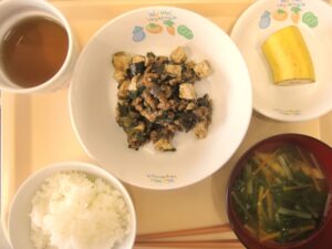 保育園の麻婆茄子には、木綿豆腐も入ってボリュームがあります。