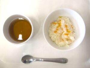離乳食(後期)午後おやつ:人参粥、麦茶
