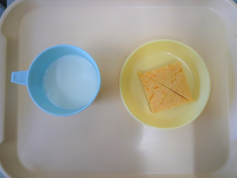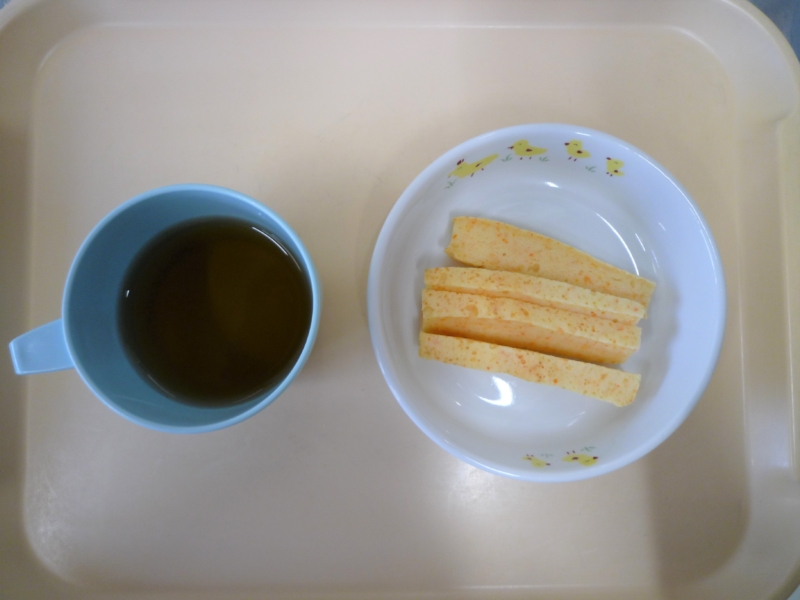 離乳食(後期)午後おやつ:麦茶、にんじんパンケーキ