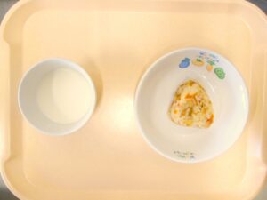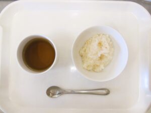 離乳食(後期)午後おやつ:麦茶、おかか粥