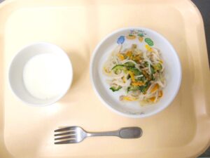 午後おやつ:ジャージャー麺、牛乳