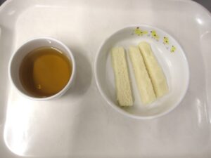 離乳食(後期)午後おやつ:麦茶、米粉豆乳蒸しパン