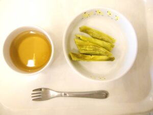 離乳食後期のおやつ:ふかし芋、麦茶