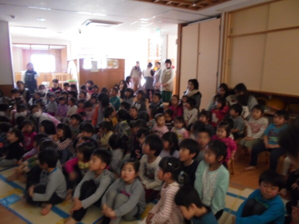影絵の不思議な世界へようこそ♪今日は影絵「花いちもんめ」の講演がありました。少し暗いお部屋に子供達もワクワクドキドキ!!大きなスクリーンに影が写し出されると「ワーすごい!キレイだね♪」という声が聞こえました。最後はさくら組さんも参加「いっぽんでもニンジン」を皆で演じてくれました。地域のお友達も一緒に楽しい時間を過ごしましたよ♪