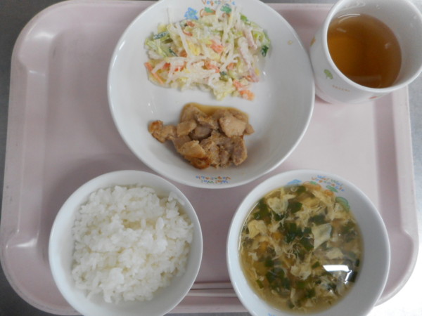 ごはん、コーンスープ、中華風ローストチキン、シルバーサラダ・・・419kcal鶏肉は必須アミノ酸をバランスよく含む、良質なタンパク質が魅力の食材です。からだの抵抗力を高め、体調の回復にも効果があります。