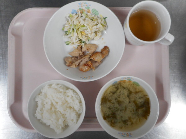ごはん、味噌汁、ローストチキン、切干大根サラダ・・・379kcal