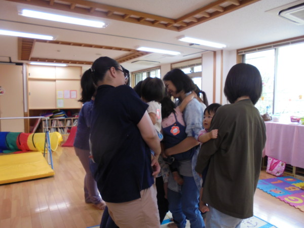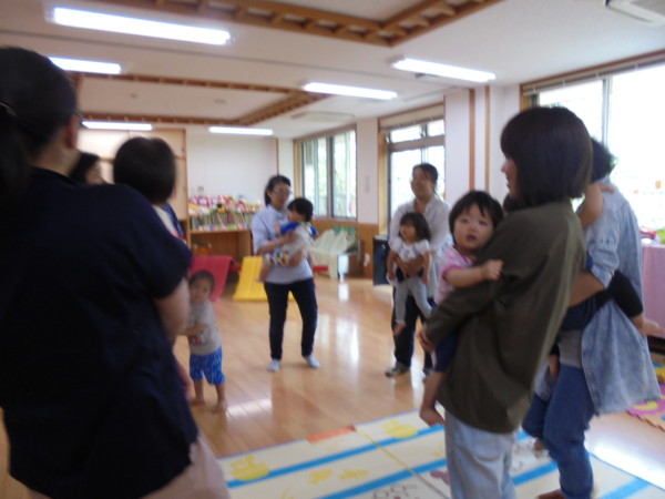今日も沢山のお友達が阿久和保育園に遊びに来てくれました。どの子も多目的ホールで元気いっぱい、笑顔がはじけています。初めて聞く曲に合わせて手をたたいたり、お尻を振ったり…本当に可愛い子どもたちです。お母さんもお歌絵本に合わせて歌ってくれたり…ママさんコーラスの誕生です♪