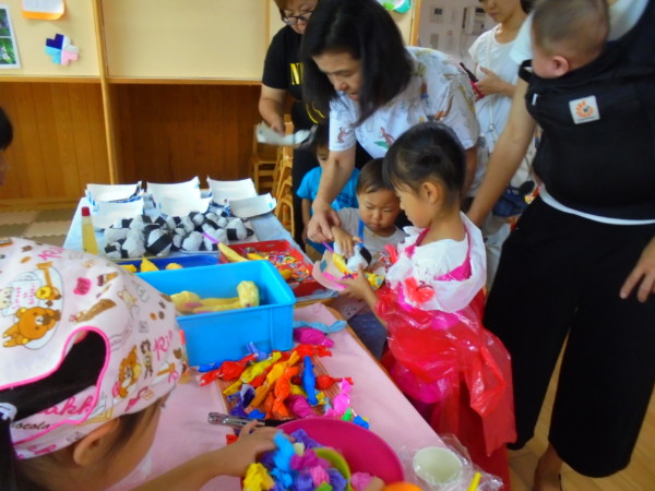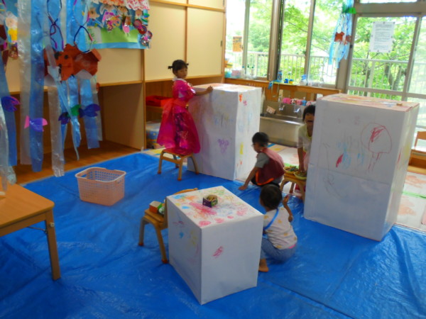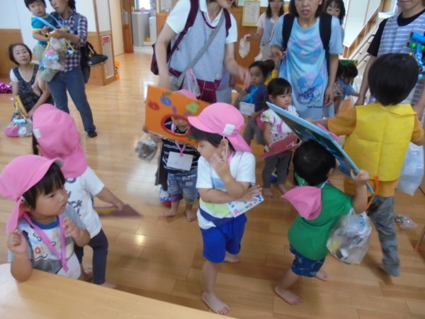 木曜園舎開放の日です。今日は、毎年行っている”ごっこあそび”をしました!!今年のテーマは”わくわくランド”ということで、電車に乗って駅弁駅やアイドル駅、記念撮影駅などの各駅に出掛けていただきました!!