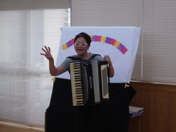 そして今日は小林先生をお招きして、アコーディオンの演奏やパネルシアターをしてくださいました!!”しあわせならてをたたこう””むすんでひらいて”などの演奏では、ママたちもお子さんたちも手拍子をして楽しむ姿が見られました♪