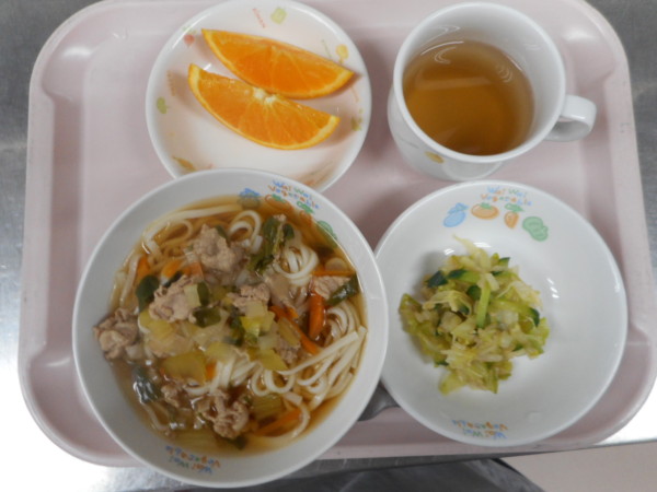 肉うどん、もやしの甘酢和え、オレンジ・・・281kcal