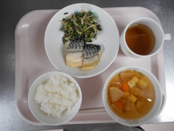 ごはん、けんちん汁、魚の味噌煮、おかか和え・・・384kcal