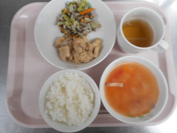 ごはん、ミネストローネ、鶏のマーマレード煮、ひじきサラダ・・・339kcal