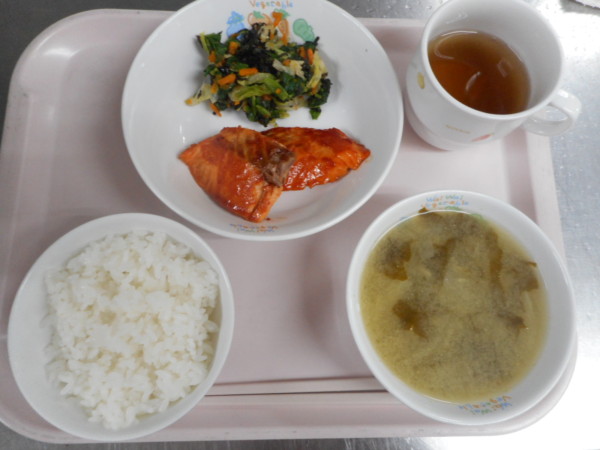 ごはん、味噌汁、あかね焼き、磯香和え・・・357kcal
