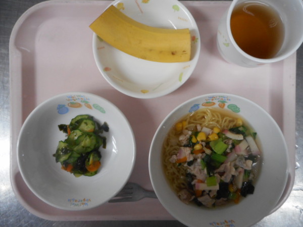 五目ラーメン、酢の物、バナナ・・・388kcal
