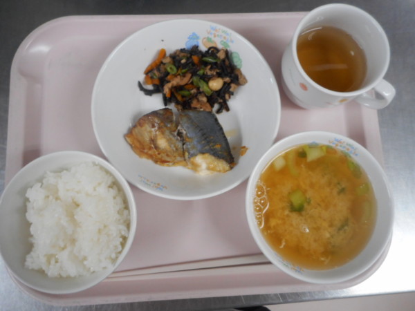 ごはん、かきたま汁、西京焼き、ひじきの煮物・・・386kcal