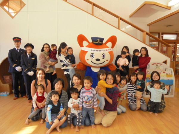 今日は、相鉄線100周年の記念事業として、阿久和保育園にそうにゃんが来てくれました。地域のお友だちも間近でみるそうにゃんに嬉しそう。一緒に写真を撮って大興奮でしたよ。その後は、二階のホールで好きなあそびを楽しみました。