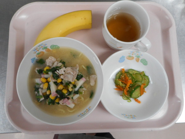 味噌ラーメン、きゅうりもみ、バナナ・・・255kcal