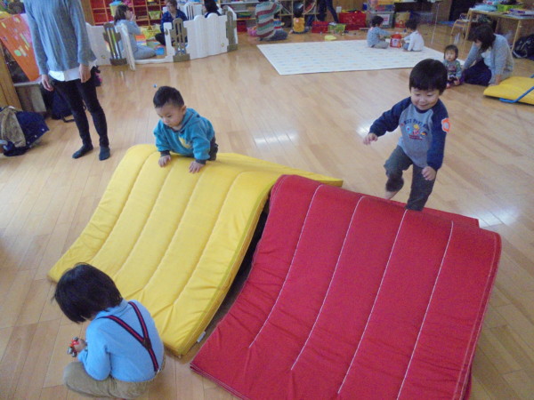 今日もたくさんのお友だちが遊びに来てくれました。鉄棒やマットのお山、好きなおもちゃで思い思いに楽しむ姿がたくさん見られましたよ!
