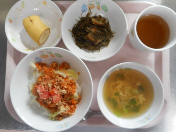 タコライス風、卵のスープ、クーブイリチー、バナナ・・・394kcal