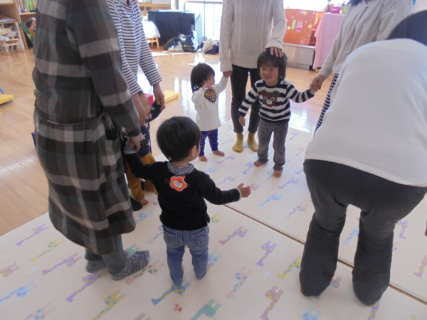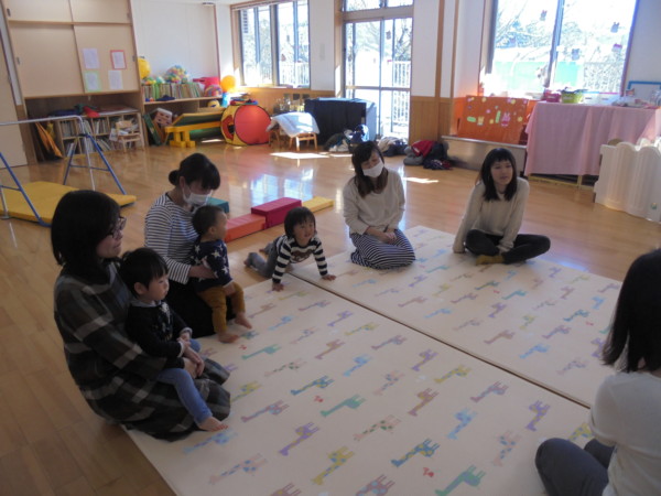 昨日の雪は本当に凄かったですね。保育園の園庭も真っ白に雪化粧して朝からキラキラきれいでした。今日の園舎開放では、お足元の悪い中でしたが、4名のお友だちがあそびに来てくれました。鉄棒やボール、電車の玩具で楽しそうにそれぞれ遊んでいましたよ。その後、みんなでお片付けをし、『だるまさんの』『いっぴきののねずみ』の絵本の読み聞かせや紙皿シアターの『モグモグ』を見て楽しみました。最後は『さよならあんころもち』でさよならの挨拶を嬉しそうにやっていましたよ!寒い日が続きますので、体調等十分に留意され、また保育園にあそびに来てくださいね。待ってま~す♪