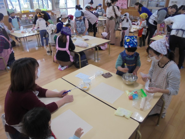 待ちにまった土曜園舎開放です。今日はクッキー作りをしました。たくさんのお友だちが参加してくれましたよ!グループになって、生地作りから行いました。みんな真剣な表情で作っていましたよ!完成したクッキーは二階のホールでお話を楽しみながらいただきました。みんなで作り、一緒に食べるとより美味しく感じられますね!最後は、アンパンマンのパネルシアターも見ましたよ!また、遊びに来てくださいね。