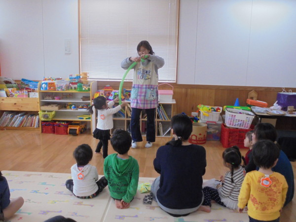 今年度最後の土曜園舎開放!たくさんのお友だちが遊びに来てくれました。今日は一年間で作ってきた制作物の残っている材料を使って制作をしました☆その後は、3月生まれのお友だちの誕生会もしました!お楽しみのバルーンアートが始まると「ワンちゃんかな?」「キリンさんかな?」と何ができあがるのかみんなで予想をして楽しんでくれました♪