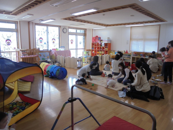すっかり春の陽気ですね。今日は火曜園舎開放です。外は桜でいっぱい、阿久和保育園の多目的ホールはお友だちの笑顔でいっぱいでした!マットのお山やトンネル、好きなおもちゃで遊んで過ごしました。その後は、アンパンマンの紙芝居を見ましたよ!