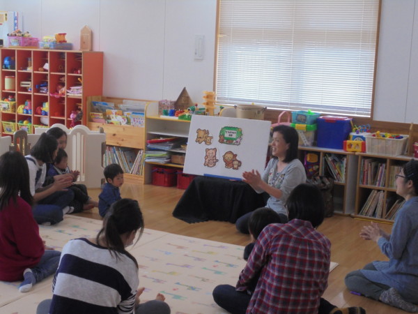 マットの滑り台やおままごとなどの玩具で自由に遊んでいただきました。その後は保育士によるパネルシアターのコーナーがありました。動物が出てくる話やアンパンマンの話などを行い、子どもたち、ママたちの楽しそうな表情が印象的でした❤また遊びに来てくださいね。