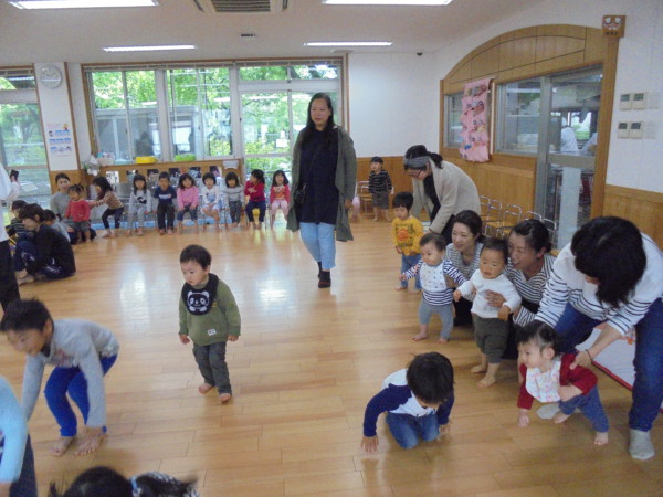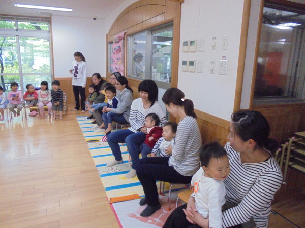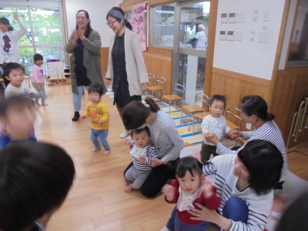 今日は地域のお友だちのリズム遊びの日です。朝から雨が降っていましたが、今日もたくさんの地域のお友だちに遊びにいらしていただきました!年長組と手を繋いで”とんぼ””汽車””きのこ”などのリズム遊びをしましたよ。ピアノに合わせて体を動かして楽しんでいる姿が見られました♪また次回のリズム遊びにもご参加くださいね。