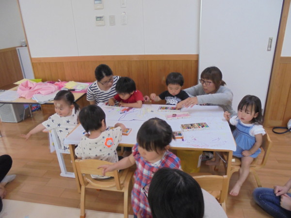 4月も終わり、今日から5月ですね!!日差しも強くなり、初夏の季節が感じられる一日となりました。今日の火曜園舎開放には地域のお友だちが遊びにいらして下さいました。マットの滑り台や鉄棒、おもちゃ、お絵描きなどの遊びを楽しんでゆったりと過ごしました。ママや先生とのお絵描きに夢中になるお子さまが多く、いちごや様々な形を話しながら描いていましたよ❤先生によるエプロンシアターや手遊びなども皆さま楽しんでいる様子でした。また遊びに来てくださいね~!!