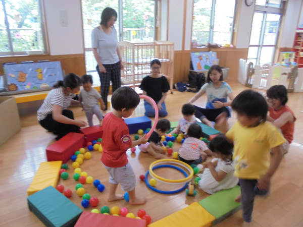 今日は木曜園舎開放日・自由遊びの日です。暑い中、たくさんの地域のお友だちが遊びに来てくださいました。開放している2階ホールでは、ウォーターサーバーや紅茶なども用意しているので自由にお使いくださいね。
