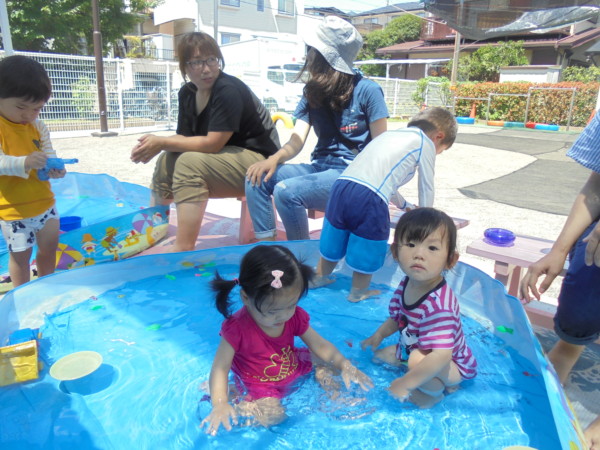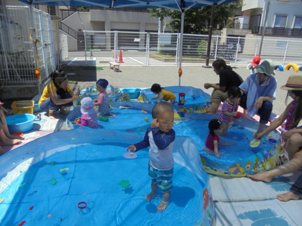 気温が高くプール日和だったので、いつも以上に水が気持ち良く感じられましたよ。魚すくいをしたり、バケツに水を溜めてシャワーをしたりと楽しみました。