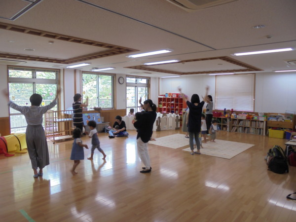 最後の体操ではママたちお子さま全員が音楽に合わせてノリノリに体を動かしました♪また遊びに来てくださいね。