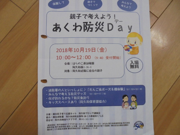 瀬谷区子育て応援ネット主催の親子で考える、あくわ防災Dayがありました。いつも阿久和保育園に遊びに来てくれているお友だちがたくさん参加してくれましたよ!消防署のお話の後、ダンゴ虫のポーズをみんなでしたり、煙体験をしたりしました。その後に、防災グッズのワークショップがありました。いつ起きるかわからない災害についてみんなで考えるいい機会になったのではないでしょうか。