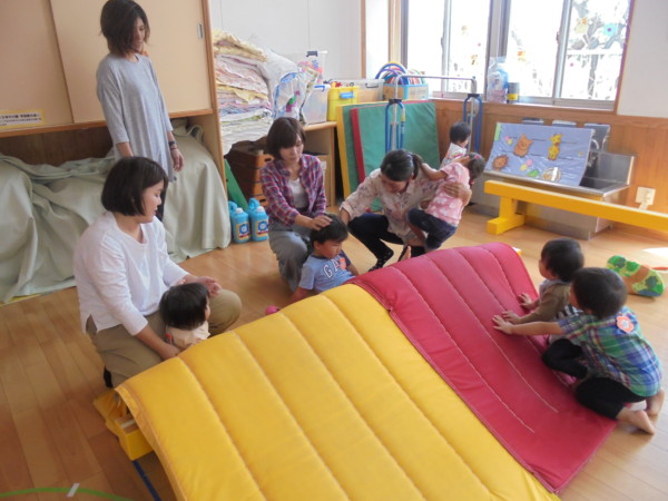 朝と夜はひんやり肌寒いですが、日中は暖かいですね。気温差が激しいので、体調管理には気を付けてくださいね。今日は火曜園舎開放です。たくさんのお友だちが阿久和保育園に遊びに来てくれましたよ!マットのお山をお友だちと楽しく登る姿やおままごとや車で遊ぶ姿も見られました。最後はみんな上手に座って、絵本をみたりパネルシアターを見たりしました。みんな夢中で見ていましたよ!