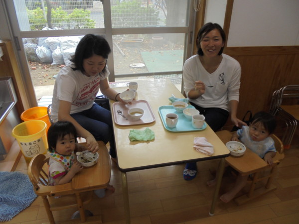 そして、今日は給食試食会もありました。お母さんと一緒にお口いっぱい食べていましたよ!