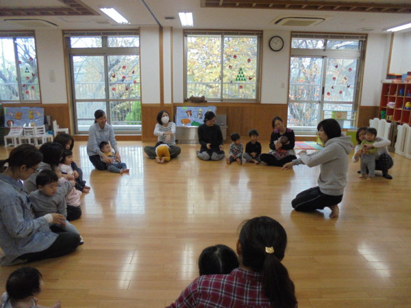 今日は佐久間晴子先生の親子体操があり、たくさんの地域のお友だちが参加しました。