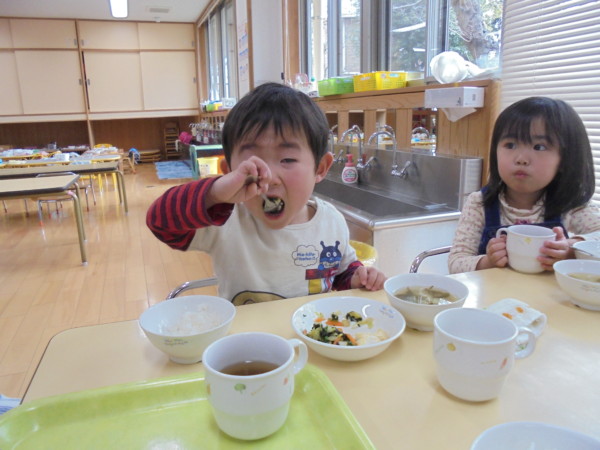 つばき保育室も参加。にぎやかなリズムになりましたよ。また給食試食会にも参加。美味しそうに食べていました!