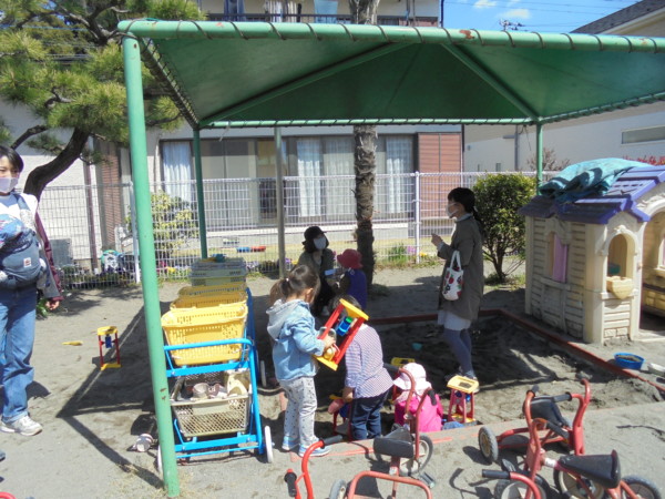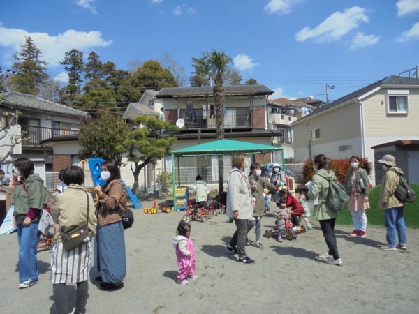 今日は園庭がお友だちでいっぱい♪笑顔の花があちこち咲いていました!本当の春が来てくれましたよ!