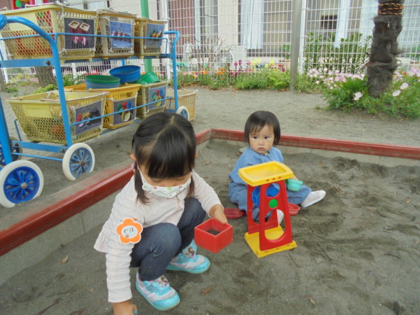 1組は久しぶりに会うお母様。やっとお外で遊べるようになったので連れてきてくださいました。保育園デビューですね♡これからもいっぱいいっぱい遊びに来てくださいね。もう1組はすっかり保育園にも慣れ、のびのびと遊んでくれています♪
