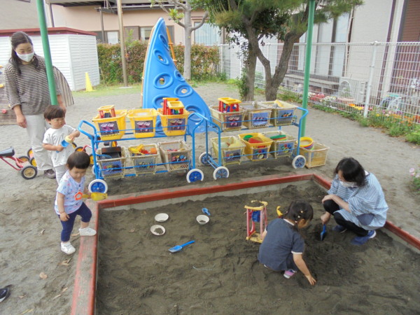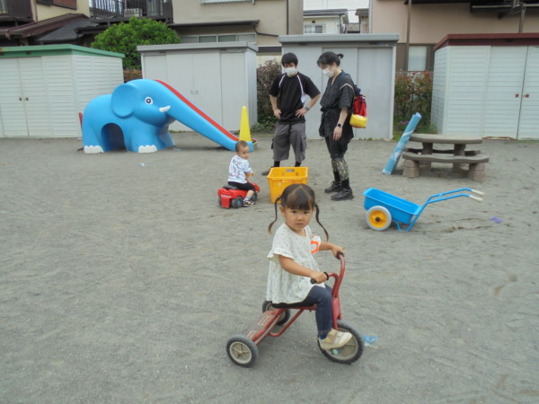 お砂遊び、ボール遊び、みんなの大好きなたこやきも再び登場‼ぞうさん滑り台にも乗りました。