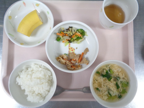 ごはん、青菜とコーンのスープ、味噌焼肉、チョレギサラダ・・・353kcal
