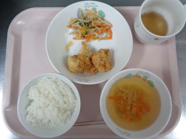ごはん、えのきのスープ、鶏肉のこんがり焼き、もやしのナムル・・・362kcal
