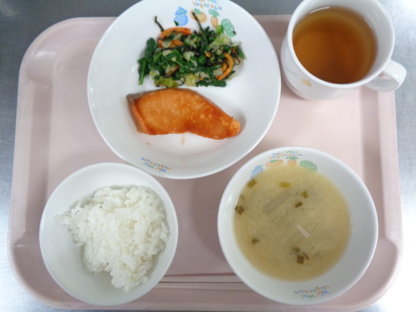 ごはん、味噌汁、あかね焼き、磯香和え・・・330kcal