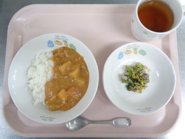 ごはん、ポークカレー、白菜のゆかり和え・・・383kcal