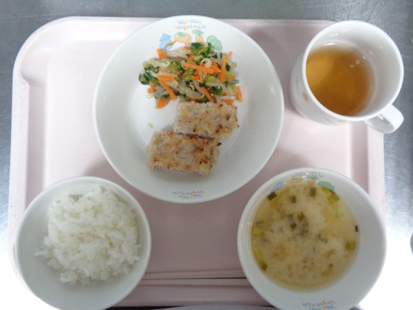 ごはん、味噌汁、松風焼、チンゲン菜のナムル・・・415kcal